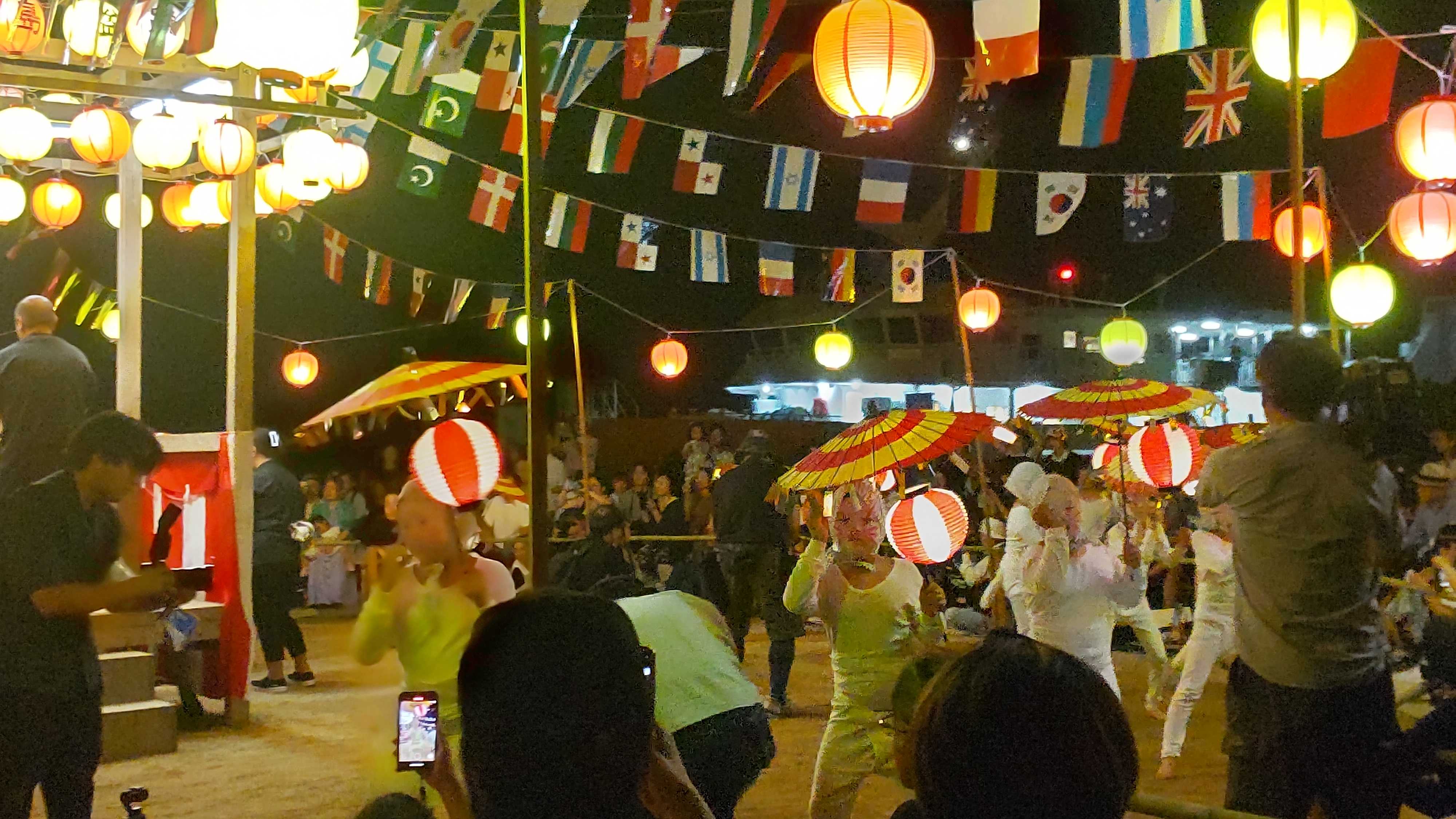 地区地区に寄って 歌は一緒だけど踊りが違ってて 傘を被った女性が踊ったり 男女が踊ったりして