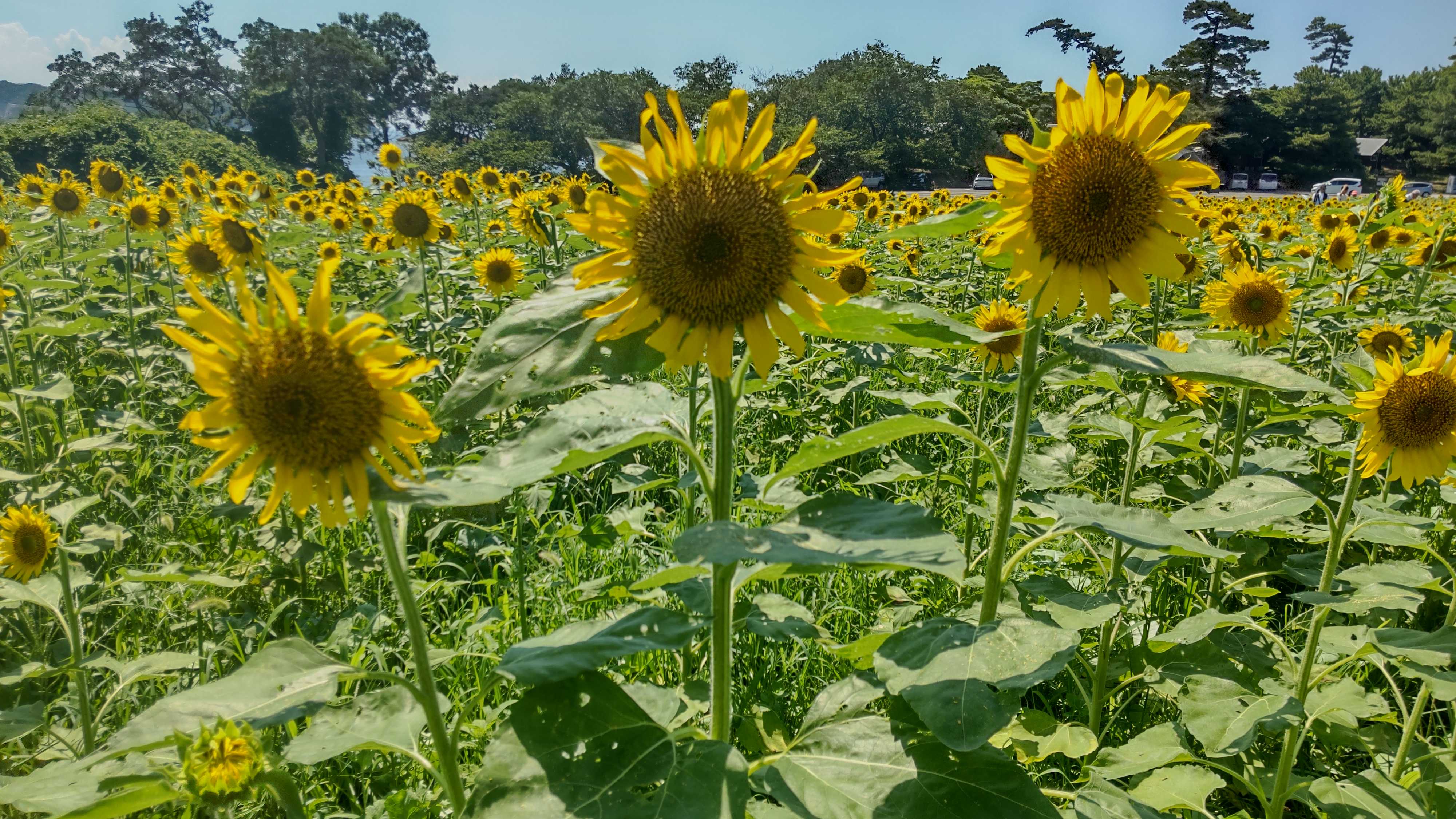 たくさんのひまわりが咲いてました。しかし 暑すぎてひと回りして美術館へ移動。