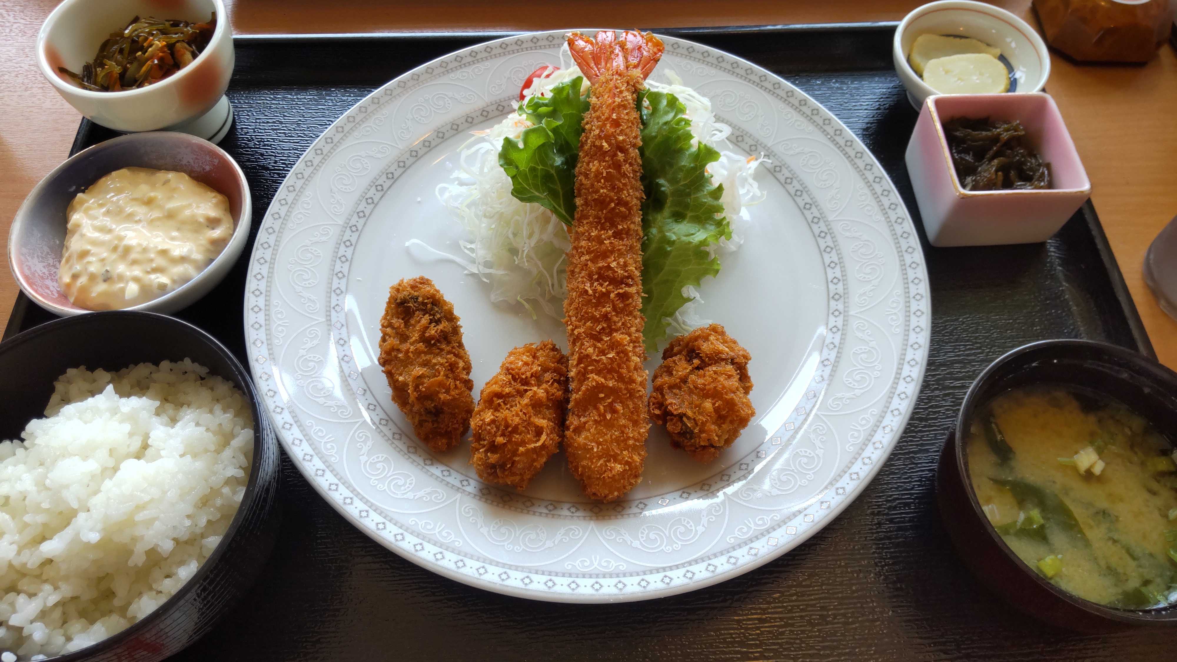 お昼はエビフライとカキフライのミックスフライ定食にしました🍤