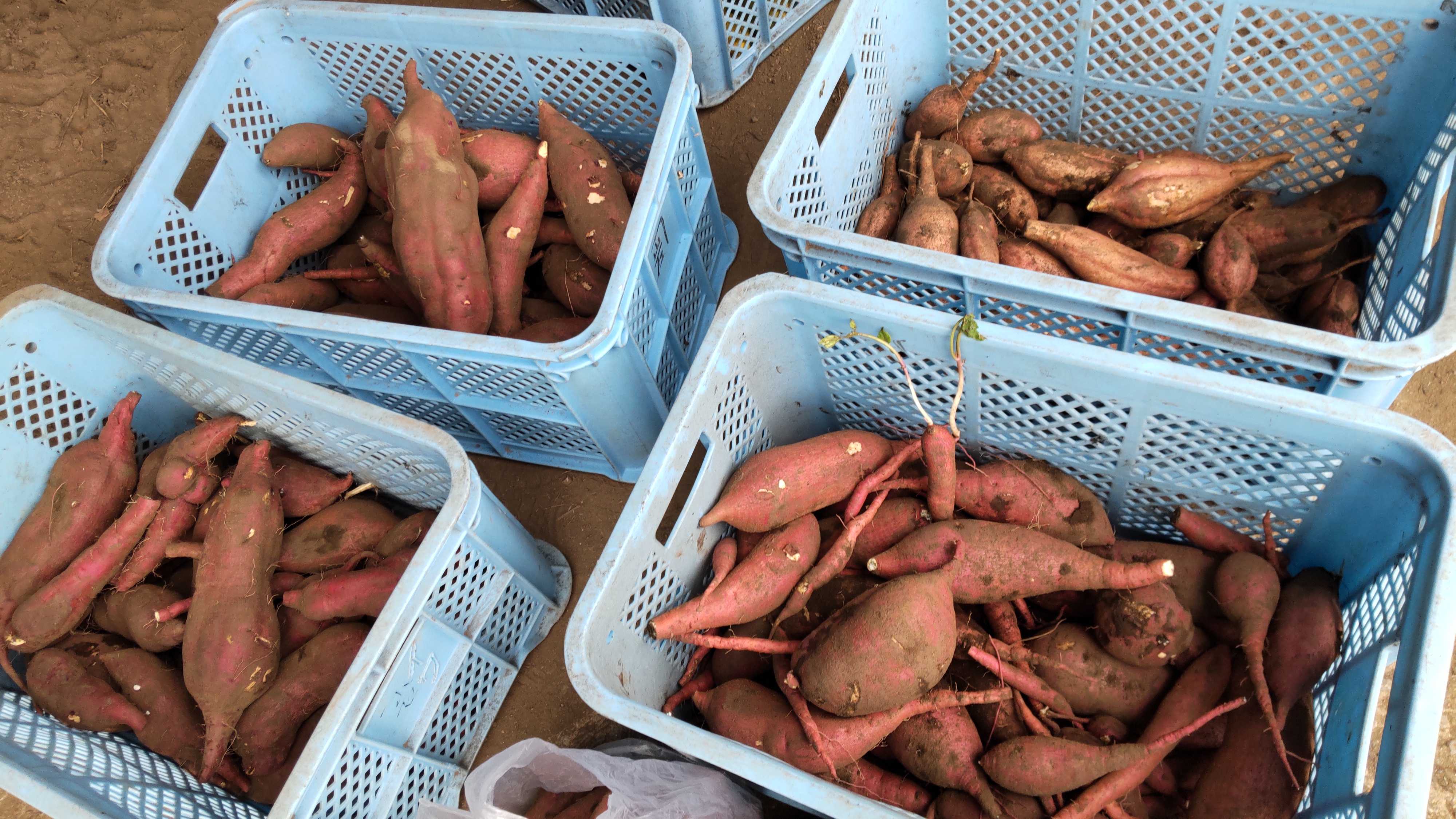 2人で掘った成果です。コンテナ4つ分🍠 1つだけ安納芋で あとは紅はるか