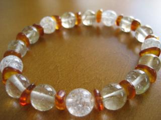 楽天外だけど、天然石ビーズが届いたので作ってみました!まずは自分用に愛用のルチルブレスをばらしてアンバーとクラック水晶(爆裂水晶)を投入アンバーはマイナスイオンを発し健康にもいいですし宝くじなど金運のお守り金の針のルチルクォーツは金運最高のパワーストーンアンバーもルチルクォーツも大好きな石(アンバーは高価なのでチップを使いました)そして爆裂水晶は扱いには注意が必要(壊れやすい)ですがパワーも絶大水晶は他のパワーストーンの力を増幅させ、浄化の力も強いので入れるようにしてます。そんなこんなで出来上がった「金運ブレス」でした今までよりパワーアップするとイイナ初めてクラック水晶を購入してみたのですが、中に虹が見えたりしてとっても綺麗ですということで、今日届いた石で色々作っちゃいました!左:アフガニスタン産AAAのラピス(かなり綺麗!)を使って(かなり高価!でした・・・大奮発(^_^;)右:MIXルチルクォーツ(色んな色があって面白いネ)後はラベンダーアメジスト(パステルカラーで可愛い)やユナカイトなどマダガスタル産のAAA(ランク)スターローズクォーツというのも興味で購入したところ同じローズクォーツでも質があることに驚いた今日この頃でした。。。質のいいのは透き通ってて傷も全くなし!!タイガーアイもだいぶ質によって違いがあるし、天然石ってやっぱり奥が深いな・・・と改めて思いました。<気になってるもの> 3段のジュエリーBOXと0.4カラットブラウンダイヤ こちらはオークション。安く落札できたらいいけど。。。欲しいなァ~素敵