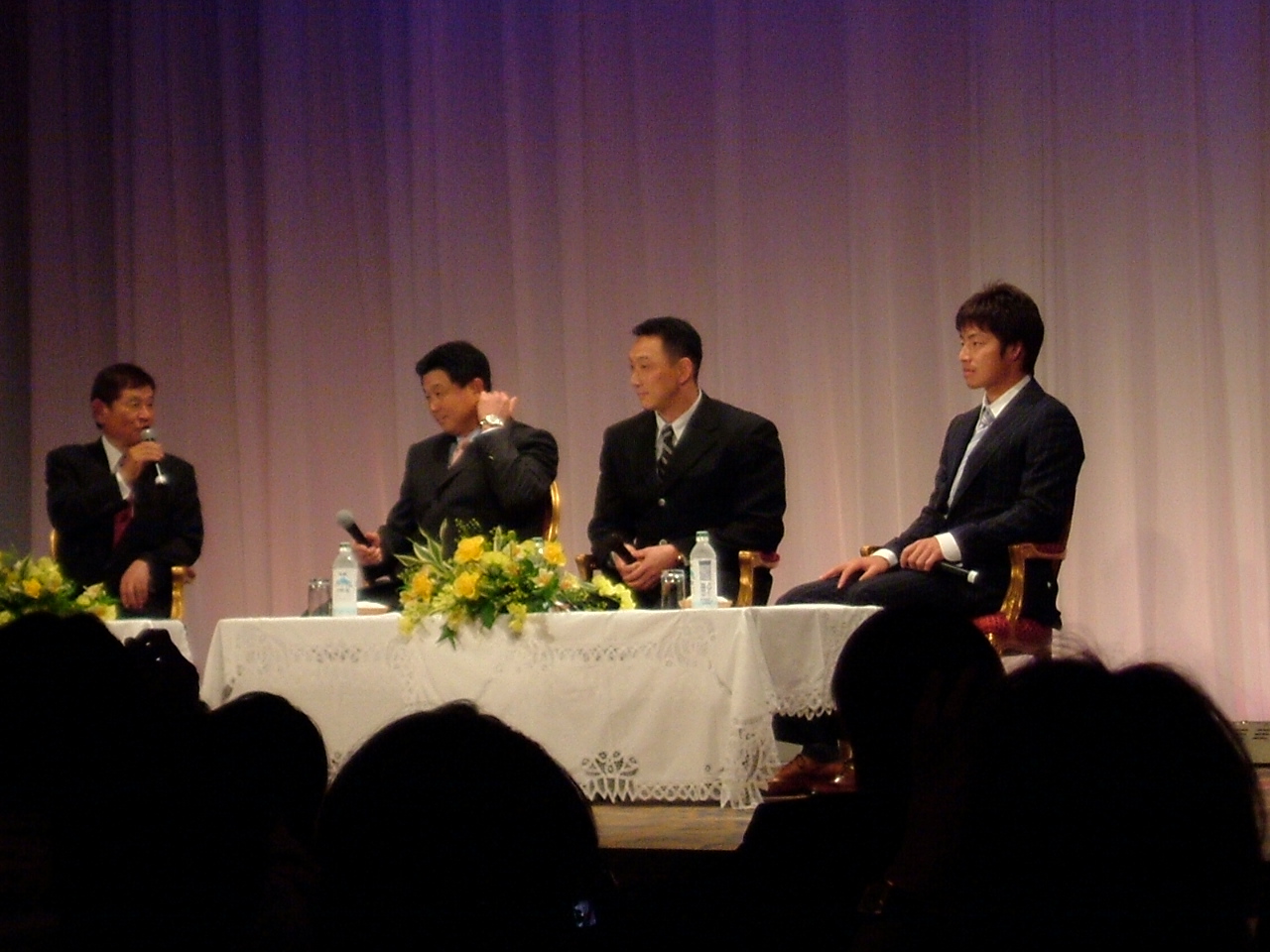 今日は晩7時から開演のトークショーに行ってきました。ゲストは平田2軍監督、金本選手、鳥谷選手でした。会場は400名ぐらいいたかな?席は少し右よりでしたがかなりのいい席でした。平田監督の爆笑トークに金本選手、鳥谷選手もただ苦笑いでした。トークショー自体はあんまり長くありませんでしたが平田コーチは面白いですね。1軍監督はやってほしいなぁと私は思っています。とりあえず会場の様子はこんな感じでした。画像はかなり大きく撮れていると思います。 最後に抽選賞はなかなか当たりませんね(笑)