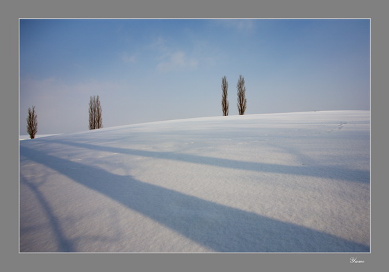 一枚目は、丘の柔らかい曲線と雪原に伸びる影がポイントになります。