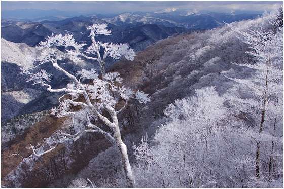 気温は-5℃でしたが、樹氷のある尾根筋は強風が横なぐりに吹いて、体感温度はもっと低く、耐えられないほどの寒さでした。