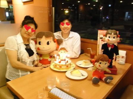 もりもりクロちゃんです。 今日は、、真夏日ではありませんでしたが、蒸し蒸しな日でした。。 今日8月4日は、、、ワタクシの、、誕生日。。 いつもと変わらない日。。 普通に、、汗汗しながら、仕事。。 仕事を終え、モモちゃんと、、 行ってきました。。。 ↓ ↓↓ ↓↓↓ 不二家のレストラン。。店内で、ハッピーバースデーの曲を流れ、、名前を呼び、案内してくれます。数組の来店の方々が、、こっちを見ながら、、拍手。。。 子供と思いきや、、大の大の、、大の大人。。。きゃ~~、恥ずかしい。。。。。。 でも、写真を撮ってくれるサービス、、良いですね。。・・・実は、去年も行って、写真を撮ってもらってます。。また、来年も、、行こうと思います。。 良い思い出。その時、その時、、を、、楽しく充実した時間を過ごしたいものです。。 年は、、、 41!!!!! まだまだ鼻たれ小僧にも、、満たない、、ピヨピヨッ子。。皆様、ご指導下さいませ。 現在、、物件探しに、奮闘中。。。元気もりもり頑張ります。もりもりクロちゃん。