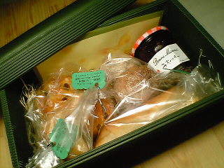 今日、会社から帰るととっても嬉しいお届け物が。。。カフェ☆モカさん から 手作りのパンのお贈り物が~!!!! 素敵でしょ~パンにはすべて パンの内容と焼き上がり時間を書いて下さってて。とっても丁寧で可愛い!大好きなボンヌママのジャムも入れて下さってて!手作りの贈り物って本当に嬉しいですね~♪先週、私の焼き菓子をお送りしたので、そのお礼とのことで送って下さったのですがお送りしたお菓子を喜んで頂けたことに嬉しく感激していたのに予想外のプレゼントで 本当に嬉しく興奮しました!さっそくお味見させて頂きました☆ベーコンチーズパン(ベーコンとクリームチーズ ホシノ天然酵母)オレンジロール(オレンジピールとラムレーズン みかん酵母)ヴァン・ルージュ(ドライブルーベリー とアーモンド入り いちご酵母)どれもすっごく美味しかった~~!私はオレンジロールが一番好き!でも、ベーコンチーズもふわっふわだしヴァンルージュは仕込み時に赤ワインを使用してるらしく、ほんのり赤くて、そして風味もとっても良かったです!どれもパン屋さんに並んでるみたい!それに、なんと言ってもどれも優しい味なんです。こころがほっこりする感じです!手作りって 心が伝わるんですね!カフェ☆モカさん 本当にありがとうございました☆明日は東京出張です~これでがんばれそうです~☆☆☆