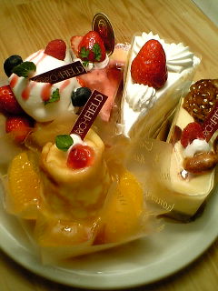 今日は ケーキ教室で仲良くさせて頂いてる私の目標でもあるマダムと一緒に製菓材料店にショッピングに行って来ました!お菓子作りが大好きな2人ですからあれこれと ついカゴのなかへ。。。今日買った中で一番気になってるのが増田製粉の「特衣笠」という薄力粉!私は いつも日清製粉の「スーパーバイオレット」を使ってるのですがボックサンでも増田製粉を使用していてマダムのオススメもあって買ってみることにしました~増田製粉のHPを見るときめの細かい生地が出来るとか。。。さっそく試してみたいのはやっぱりジェノワーズですね~パンと比べるとケーキの生地は味の違いがわかりにくいですがこれは実験してみたい!って思っています~そして、もう一つの目的はマダムとリッチフィールドにご一緒すること♪ボックサンの福原シェフの弟さんのお店でマダムは食べてみたいっとおっしゃっておられて私は1ヶ月近くぶりだったのでとっても楽しみでした~奥左から 苺のシューケーキ・苺のクラフティ・ショートケーキ手前左から オランジュ・はちみつケーキどれも素晴らしく美しくすっごく美味しい~♪特に美味しかったのは苺のプリシューの入ってるケーキでした!見た目もクランベリーにブルーベリー、苺と甥っ子の好きなものばっかりできっとこれを選ぶんじゃないかな?って思ったら大当たり!でも、みんなに分けてくれて 優しい子です☆そして、苺のクラフティもさすがでした!アパレイユも良い感じで これはまた食べたくなるわ~それとオランジュは先日、ケーキ教室で頂いたのと似てるケーキでした!どれもこれも美味しいですね・・・お店は一杯の人でした。これだけ美味しいケーキなんだから流行るはずです・・・!実は、お茶をする予定だったのですがただいま改装中で・・・喫茶は14日からリニューアルオープンするそう。。。マダムとゆっくりお話できると楽しみにしていたのに・・・残念☆でも、車の中や製菓材店でいろいろお話しできて楽しい一日でした!遠いところお越し下さりありがとうございました☆