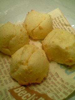 ウチに泊まりに来て2日目の甥っ子。毎朝、母が朝食にフルーツサンドとミックスジュース、サラダ・・・っという感じで作ってくれてるのですが今朝は、甥っ子よりフェイントで台所に立ちポンテケージョを焼きました!! 簡単なので、すぐに作れるのですが最近は 作ることがなかったのです。。。やっぱり焼きたてがいいですね~このもちもち!甥っ子はもち好きなのでよろこんで食べてくれました!そして、今日のおやつ昨日、マダムにお会いするのにおみやげにお作りしたお得意のシフォンケーキ!(だんけ のシェフに お褒め頂けたシフォンです~)しかし・・・しっかり目に焼いて 焼き上がりが落ちないようにしようと思ってちょっと長めに焼いたらちょっとだけ焼きすぎて。。。が~ん・・・もっともっと しっとりしていて弾力もある生地なの。これをお渡しするのはどうかなと悩んだけれどお渡ししました☆マダムは本当に喜んで下さって。。。!一生懸命作った気持ちや 食べて下さることを考えて作ったことが伝わるのでしょうか。。。お嬢さんと召し上がって下さったようで絶賛してくださったとか。。。うれしい。。。。ありがたきお言葉でございますm(_ _)m いつもなら クリームなしでもしっとりなんだけど今回は 生クリームを添えて頂きました!でも、美味しかったわ☆(自分で言うなよっ!)今度は絶対に成功したのを食べて頂きたいです。。。
