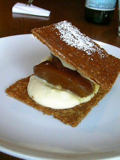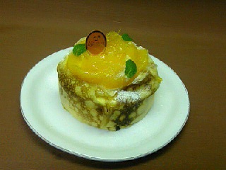 ご無沙汰しております・・・いろいろあって仕事も忙しくしておりまして なかなか日記が更新出来ないこの頃・・・皆様のところへもまたお邪魔させていただきます(-_-#)エスコヤマのケーキ教室の3月は「クレープシュゼット」小山シェフのクレープシュゼットはさすがに何工程もあるとっても凝ったお菓子でした!!シェフ作のです~クレープもさすが綺麗な模様ですしデコが本当に素敵~♪オレンジのさわやかな初夏を感じるお菓子ですね!試食の写真ですが中はこんな感じになっています~(^_^)一番下はビスキュイでオレンジのムースに黄色いところは南国フルーツ系のソース生クリームを合わせてないガツンとしたカスタードクリームも口の中でアクセントになり・・・クレープも一枚一枚オレンジソースでソテーしてムースに巻いています。本当に一つ一つの作業が丁寧で凝っています。もちろん お味は最高~!こんな美味しいシュゼットは初めて☆ 完成したクレープシュゼットです~♪本当に大変でした!でも、いつもながら本当に勉強になる内容・・・で、いつもながら最後に思うことは「やっぱり丁寧さが一番大切・・・!」本当にそう思います。そして、想像力。これとこれを組み合わせたらどんな味になるのかというのを想像しながら作ることが美味しいお菓子をつくるコツだとシェフがいつもおっしゃるのですがバランスのとれた素晴らしいお菓子を作れるようになるには想像と経験両方必要ですね!切磋琢磨☆楽しんでがんばりたいなって思います。シェフに感謝♪