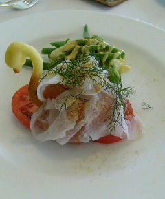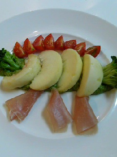 旅行から帰ってきた次の日。。。瀬田シェフの料理教室でした(^o^)7月のメニューは私の大好きなメニューでした!生ハム、桃のサラダ アヴォガドのピューレこれは私の好きなものばかり!桃を使ったお料理って大好きなんですよね~去年、ターナフォルノで食べた桃のパスタを思い出しました。。。。美味しかったな~!大好きなアヴォガドのソースがかなり引き立ってなんて美味しいんでしょうね~今の季節しか頂けない贅沢な前菜でした~♪鶏もも肉濃い口マリネのオーブン焼き ソースチゲこれ、見た目でわかりにくいですが実はチゲソースなんですよ!瀬田シェフの手にかかるとチゲに見えず上品なフレンチに!そして、オーブンで焼いた鶏ももが柔らかくってすっごく美味しい~(^o^)セルクル型になっているのはじゃがいもとキムチのガレットなんですよ!それと茄子が合うのです!いつも瀬田シェフのお料理はびっくりサプライズ!美味しいんですよ☆そして、楽しみなデザートパイナップルのプリン & プルーンのアイスクリームこれがまた美味しいのです!とくにプルーンってびっくりでした!赤ワインに一晩浸してるんですって!ちょっとはまりそうなアイスでした☆いつも楽しいお料理教室~今日はちょっと食後のおしゃべりも長くなって楽しいひとときでした♪