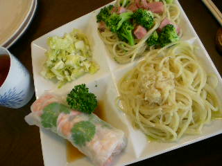 昨日はずっとハードスケジュールだった仕事が一段落したので有休を取り親友宅へ行ってきました~!予定では親友の子供2人を幼稚園に預けて梅田でランチをするつもりだったのですがグットタイミングに下の男の子が熱を出して・・・子供ってそういうもんですよね~(^^)私がお邪魔することになりました!玄関のドアを開けると私の顔をみてニンマリ笑ってる(*^_^*)「お熱がでたの??」「うん(^^)」「大丈夫??」 「うん(^^)」 と うなずく。。。1歳半でしっかりはしゃべれないけど私の言うことはよく分かってるみたい(^_^) カワイイ!それで、お腹がすいてたまらなかったので洗濯ものを干してた親友を手伝いお昼の準備をしました!「パスタを作ろうと思って・・・!」「ウン!OK!」やっぱりツーカーになれる仲がいいですよね!で、出来たのがコレです~↓この器。。欲しいな~って思ってて。。。やっぱりいいですよねっ!キャベツのサラダは親友が作ってくれててこれが私好みの美味しさ!セロリシードが入ってるらしくとっても美味しかったのでレシピを頂いて帰りました!パスタ2種は結局、私が作ったのですが・・・「あれ?もっとニンニクが効いてるんだけどな・・・」って言われて。。。「バレた~!?」私、ニンニクがちょっと苦手なのでオリーブオイルにニンニク1片と鷹の爪を香り付けて取り上げておいたんですよね~ホタテのペペロンチーノだったんだけど私好みにしちゃってゴメン~~(^^;)鷹の爪は輪切りにした方がよかったね!!ikariの生春巻き美味しかったです☆美味しいランチをしてつもる話をずっとしていたら本当にあっという間ですよね~おやつの時間まで子供が寝ててくれてラッキーでした☆またまたロールを焼いて持って行ったんですよ!これは「くみのこだわりロール」朝飯前とはこのことか朝食を食べる前に焼いて食べたから巻きました!そしてお昼には豊中の親友の家へ・・・今までで一番ふわふわだったかも~~!これは愛情分かしら(^_-)添えてくれたアイスクリームは黒蜜ときなこのアイスクリーム♪これまた goodでした!!夕方、上のお兄ちゃんが帰ってきた「くみちゃん くみちゃん つみきであそぼ~~!」いつもカワイイのです!楽しいひとときでした~普段の慌ただしさやストレスを忘れる時間・・・話をしてる間にいろんな事思い出したり気付いたり。。。お腹かかえてわらったり♪親友宅で癒されました~~いつも本当に本当にありがとうね(*^_^*)プレゼントもありがとっ♪