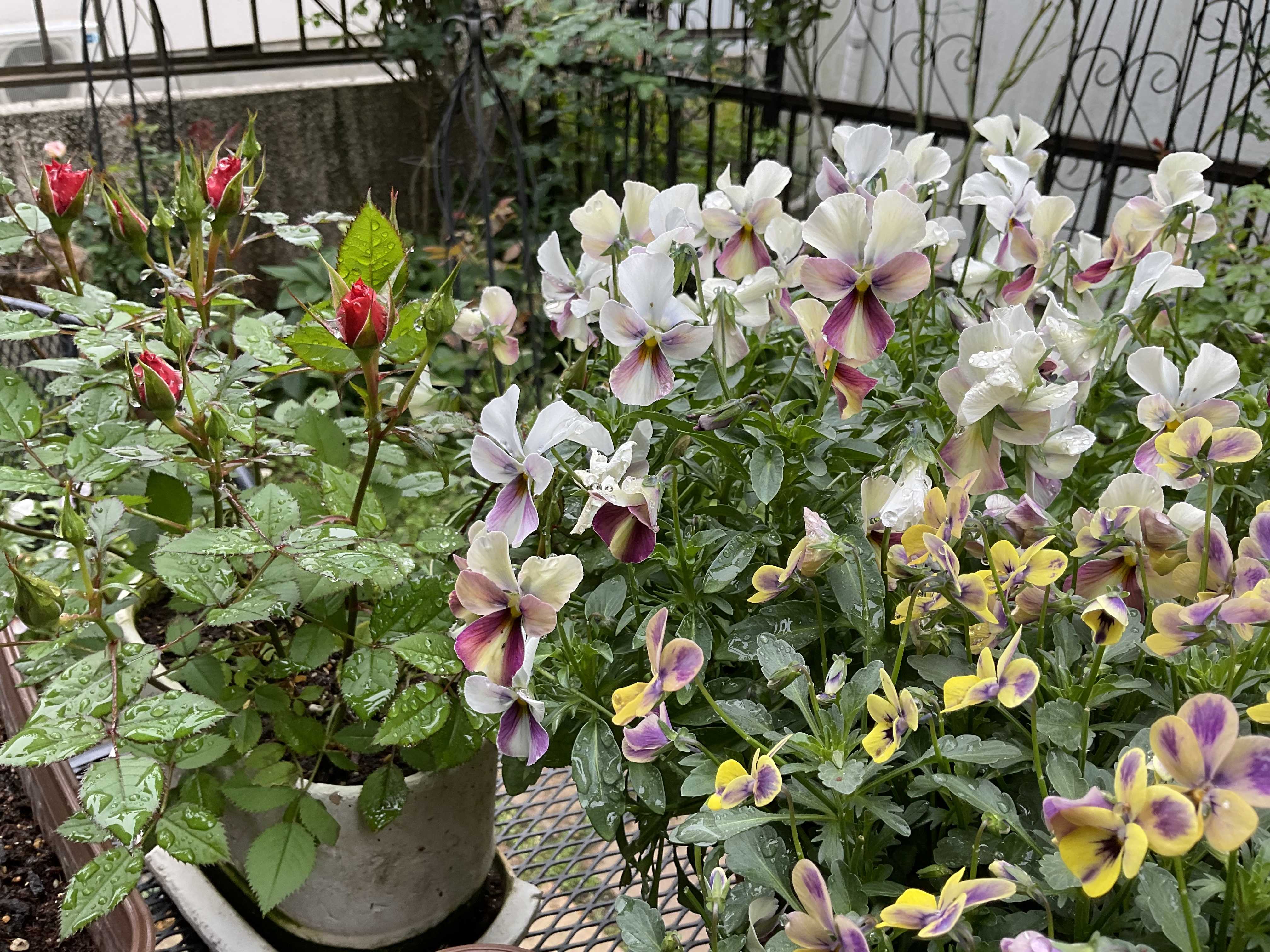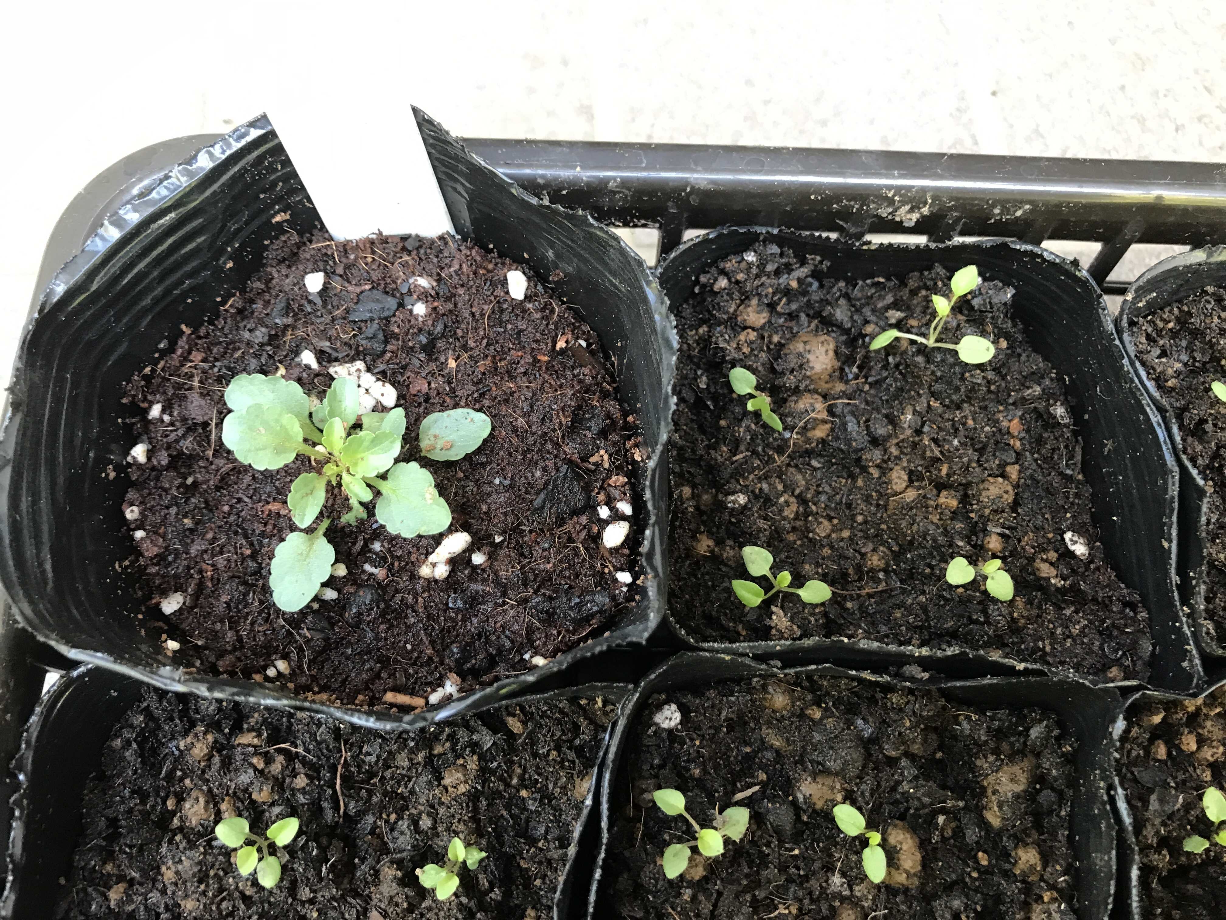 くらべて、我が家の種をまいたビオラ、本当に小さい