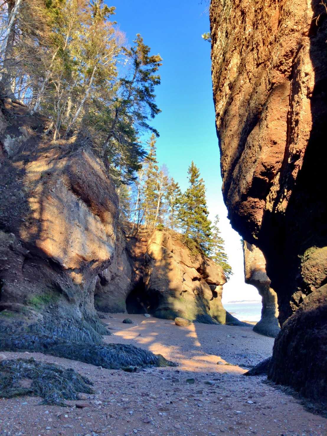 世界で最も潮の満ち引きが激しいファンディ湾に位置するホープウェル・ロックスでは、満潮と干潮の景色の違いを目の当たりにすることができる