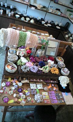 お手頃価格の天然石ピアス、くるみボタンのヘアピンの新作も納品しました。