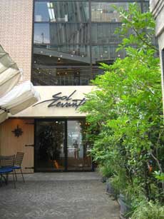 表参道で14時過ぎちゃってのランチなかなか難しいけど、カフェなんかじゃなくちゃんと食べたいのよいくつかのお店にフラれ....辿り着いたのはSol Levente(ソル・レヴァンテ)工事中の紀伊国屋の裏手にあります。 バームーヘンで有名なクラブハリエ(ってことは本体は和菓子のたねや)が経営するイタリア菓子専門店。確か、パスタとか軽くお食事もいただけたはず...なんとかラストオーダーの14:30前に滑り込みました こちらはカフェ、バール、ドルチェショップ、レストランの4つの構成からなっています。だから、一人はお食事、一人はお酒...なんていう組み合わせでもOKなのよね~そして、メニューを見て...軽くお食事とは失礼しました。スープ、前菜、パスタ、デザート、飲み物のパスタランチは1890yenパスタランチ+メインのコースもあってしっかりお食事できそうです。 トマトとスイカのガスパッチョ香りも味もスイカの風味がしっかり味わえます。なんとも不思議によく合うのよ、中にはマイクロトマトが一粒。暑い昼下がりには気持ちのいい美味しいスープでした 前菜です。こんな細長いお皿で出てきましたよ。 帆立のエスカベッシュ ラズベリージャムとレバーペースト ロストポークと牛蒡のアラビアータ 野菜のグリル イカスミのリゾット アサツキのソース この前菜どれも美味しくレベル高い~ワイン呑みたくなちゃったよ ほろほろ鳥と夏野菜のビール煮込みの手打ちフェットチーネ夏野菜の旨みが手打ちパスタも パスタは3種類から選ぶことができました。 お口直しのグレープフルーツのシャーベット ガトーショコラ カプチーノデザートはシャーベットだけでも充分満足な代物。「うちはお菓子屋ですから」とおっしゃって、デザート皿をサーブして下さいました。 なんか考えていたこと「しょせんお菓子屋さんのランチ」を見透かされたようで、恐縮してしまいました。あらためて、ごめんなさい。とても美味しくお食事できました。しかも、1890yenで充分なほどの内容です。表参道で、ゆっくり静かでリーズナブルなイタリアンランチオススメですよ~ ご馳走様でした! Sol Levante 港区北青山3-10-14 03-5464-1155