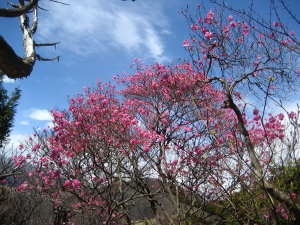 アップするのが大分遅くなりましたが、4月16日(木)に群馬県桐生市の鳴神山に登ってきました。つい最近知ったばかりの山なのですが、アカヤシオが咲くという話にひかれて出かけました。県道66号の桐生田沼線から梅田湖を通り、梅田南小から343号線に乗り換えて、木品の登山口を目指しました。登山口となる樹徳高校の山荘に近づくと、この高校の生徒たちが重そうなかばんを持って歩いていて車が進めず、思いがけず時間がかかりました。鳥居をくぐって登山道に入り、ゴロゴロした岩場の急な道を足元に気をつけながらひたすら上を目指して登りました。 杉林の間の沢道が登山道になっていて展望がきかず、初めての山でどのくらいかかるのかも分からないのがちょっと不安でしたね。・・・というのも343号線の途中が工事中で、帰りに車が通れるのが、12時から1時までの間と、3時から3時半の間といわれていたからなのです。 3時から30分間にうまく通らないと次にあくのは5時過ぎというのですから・・・。 それでも途中で初お目見えのスミレを見つけました。 おそらく「ヒトツバエゾスミレ」の白花種で、鳴神山特有の「ナルカミスミレ」というのは、この花のことなのでしょう。かなり登って肩の広場のすぐ下には「カッコソウ」の移植地というのがあって、「カッコソウ群落の復活を願って」と書いてありました。初めて見る「カッコソウ」という名前に心惹かれましたが、まだ花の時期にはちょっと早かったみたいです。 サクラソウのような葉っぱで下の方にはつぼみもできていましたから、まもなく花が見られるのでしょうね。 標高が上がるにしたがって少しずつアカヤシオの色が枯れ木の間に見えてくるようになり、期待が大きくなるのでした。たどり着いた肩の広場からまずは双耳峰の左手の「仁田山岳」に登りつくと、何とアカヤシオがいい色でたくさん咲いているではないですか・・・。2時間も登った末にやっと見られたアカヤシオ、感激もひとしおでした。もうひとつの山頂「鳴神山(桐生岳)」からの見晴らしが良いというのでお昼はそこで食べました。平日のありがたさ、山頂は私たち5人のみ。展望こそ春霞でイマイチでしたが、色濃いアカヤシオを前にゆっくり時を過ごしました。でも、この土、日はさぞかし混んだことでしょうね。ここのアカヤシオは余り樹高は高くないのですが、色が濃くて見事でした。下は、山頂のアカヤシオです。 下りで上手に時間調整をして歩いたので、ちゃんと3時に工事場所を抜けることができましたよ。帰路は草木湖に抜ける峠道を通って、足尾まわりのコースを走りました。最後に待っていたのは日光高速の桜並木。ピンク、白の濃淡の色さまざまで、とってもきれいでした。