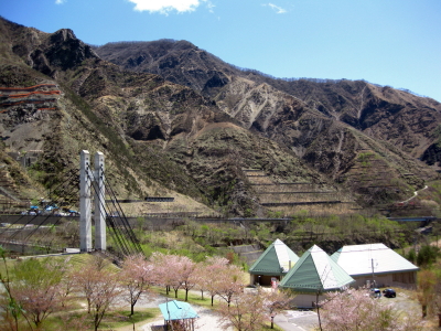 23日(木)私の花旅仲間と夫の友人との総勢9名で、足尾の備前楯山に登りました。朝のうちは雲があったのに、足尾に着くころにはまっ青に晴れ渡り、春には珍しく空の高い一日でした。備前楯山は登るのに1時間もあれば十分なので、あちこちと寄り道しながら歩けて楽しいのです。まずは、「銅(あかがね)親水公園」まで足をのばしました。公害で禿山になったこのあたりは毎年の植樹で少しずつ緑が回復しているとはいえ、まだまだ荒々しく激しい雰囲気をしています。 環境学習センターの前に植えられた桜がまだきれいに咲いていて、その優しい感じは禿山と好対照です。「三川合流」を見下ろしてから舟石林道経由で備前楯山登山口に向かいました。途中の山肌に咲いている山桜がちょうど見頃、この辺は真っ白い桜ばかりでとてもさわやかな美しさでした。備前楯山は登山道が明るくてとても気持ちがよく、特に今の季節は芽吹き前なので、遠くの山々がよく見え、特にこの日は不思議なほど空気が澄んでいて、実にすがすがしい気分でした。 もちろん、アカヤシオもちょうど見頃を迎えたところ、久しぶりに山歩きをする友人たちは大喜びで歓声を上げっぱなしでした。 1,272mの山頂で大展望を楽しみながらお昼をいただけるなんて、何て幸せなんでしょう・・・!真正面には日光の男体山、左には袈裟丸連峰などの群馬の山々、右には薬師岳、夕日岳など前日光の山々がそびえ、手前には草木の生えない足尾の山々が・・・。1時間余りで登ったにしては全く贅沢な場所です。 帰りは銀山平経由でもどり、半世紀前までは銅山景気で栄えていた小滝の里に立ち寄りました。 今は全く面影はありませんが、かつて人の住んだ証拠に山の高いところまで石組みが残っています。 最盛期には1,000人もの子供たちが通っていた小学校跡地に登って見ましたが、今は学校の土台しか残っていません。時の流れの早さと人の営みのはかなさを感じさせられます。学校跡地の端から見える庚申川とまわりの山々がとってもきれいでした。 この日の帰りは始めて通る道、去年秋に開通して冬中不通になっていた「草牛足尾線」。粕尾峠の頂上から前日光牧場のほうへ入り、途中から古峰ヶ原まで続く新しい道ができているのです。まだ走る人も少なく、というか誰が何のために通るのかな、と思うような場所ですが、山がきれいでとてもいい道です。古峰ヶ原~前日光間が実に近くなりました。 というわけで、盛りだくさんな楽しい一日でした。今現在、外は雨・・・土、日を期待していた人たちには大変申し訳ないです。