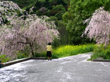 15日水曜日の朝のこと、「ローバの休日」の仲間からの電話・・・「ねえ、晴れてるよね! 忙しくなかったらお茶のみに来ない?」「老婆の休日」という落語がありますが、この仲間はまだ「老婆」というほどではなく、でも全員孫持ちだし、その昔「ローマの休日」という映画に夢中になった世代なので、先月の観梅以来こう名づけてお出かけすることにしています。「花旅」「E花旅」に続く3つ目の仲間です。天気予報では水曜日は朝から雨の予報だったので、お出かけ予定を中止にしていたのです。でも、せっかく晴れたんだから「お茶のみ」だけではもったいない、お出かけしましょうよ。ということで、先日行った大平町の清水寺方面にドライブすることにしました。この日の相手は電話をくれた一人だけ、彼女は今日もやはりスカート、そして、ちひろの絵画から飛び出したようなかわいい麦藁帽子風のいでたちでした。前日の雨のせいでしょう、清水寺の桜は色も薄くなり、緑の葉っぱが出ていて「ああ、残念!」と思ったのは私だけ、彼女は車を降りるなり・・・「うわー、きれい! 何これ、こんなきれいなところがあるなんて、すごいすごい!」と感嘆しきり。 そうか、はじめてみる人には素晴らしい景色ですよね! 彼女は運転免許を持っていないので、めったにお出かけしないのだそうです。 風のある日だったので、時折吹いてくる渦巻くような風に花びらが散って、口の中にまで花びらが飛び込んできて、子供に帰ったような楽しさでした。清水寺は「シャガ」の盛り。花壇には牡丹色のみごとな「ボタン」が何個も咲いていました。季節の移り変わりの速さは恐ろしいほどです。ちいさな「ハルリンドウ」もいくつか咲いていました。またしても立ち寄ったのが「かかしの里」。 ここも散りゆく桜がひらひらときれいでいした。盛りは八重の牡丹桜、珍しいうす黄緑色の「ウコンザクラ」もまだきれいでした。 もみじの芽吹きも色濃くなり、山の色もいっそう深みを増してきているようでした。 お昼は佐野の三毳山まで足をのばし「花センター」の近くの「円仁庵」。11時に宇都宮を出たのですが、ドライブだけだと大して時間もかからず、彼女の家に上がりこんで最後は予定通りのティータイム。朝作っておいたというお手製のシフォンケーキが程よい甘さでとってもおいしく、楽しい一日に素敵な思い出がもうひとつプラスされました。