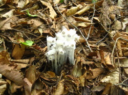 昨日は宇都宮でも 37.5℃まで気温が上昇して狂気を孕んだような熱風の中で汗だくで一日を過ごされた方が多かったのでしょうね。私たちは朝の天気予報の最高気温を見た途端に避暑に出かけることに決めました。急ぐこともない年寄り二人、ゆっくりいろは坂を登って中禅寺湖畔のボートハウスで車から降りると、吹いてくる風の何とも気持ちのいいこと・・・・!ボートハウスのテラスで湖から渡ってくる風に吹かれていると、まさに極楽気分でした。部屋の中には女性が二人、テーブルに何か広げて作業をしているようだと思ったら編み物をしていたようです。ここまで登ってきてしまえば、糸がべとつくこともなくて、さぞや作業もはかどったことでしょう。菖蒲が浜から湖畔を歩きましたが、風のある日だったので涼しさもひとしお、下界の暑さがどんなものかも知らずに気分よく歩いてきました。お昼はいつもの栃の木の浜。 ここでの楽しみはちょっと登ったところの枯れ葉の中のギンリョウソウ。今年はどうかな、と期待しながら探していると、あっちにもこっちにも様々な表情で顔を出していました。 そして、ギンリョウソウに混じってこんなものを発見! まだ固いつぼみですが、「イチヤクソウ」です!中禅寺湖畔は、トウゴクミツバとシロヤシオの時期に歩くことが多いので、今まで気がつかなかったのでしょうか?ちょっと季節を変えて歩いてみると、新しい発見があって楽しいものでした。宇都宮に帰ってきて、車を降りたときの空気は何と表現したら良いのでしょう・・・。瞬間的に脳味噌まで茹だってしまったようでした。長い事あきらめて放っておいた花旅ブログ、さっき開いてみたらスイスイ動くじゃないですか・・・。これなら私でもストレスなく日記を書けそうです。一体何がどうなったのやら・・・。