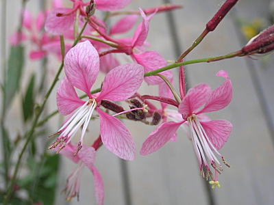 2枚目は昨日もらってきたガウラ。風が強いので家の中にしまっていました。午後になってから表に出しました。ピンクで可愛いです。