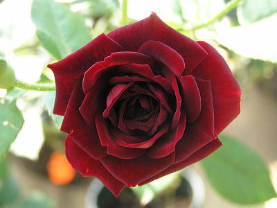 温室に行くと新品種の人気投票がありました。2枚目の写真は「黒蝶」というバラです。