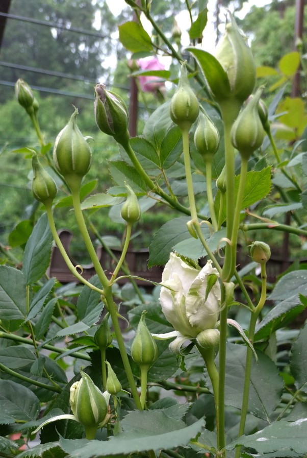 育ててる植物:バラ(50品種くらい)、クリスマスローズ(小さい苗も入れたら数えきれない)、牡丹、シャクヤク、クレマチス、球根ベゴニア、あじさい、きんもくせい、ぎんもくせい、サルビア、ブルーベリー、実モモ、クリ(ぽろたん)、ブドウ(ピオーネ)