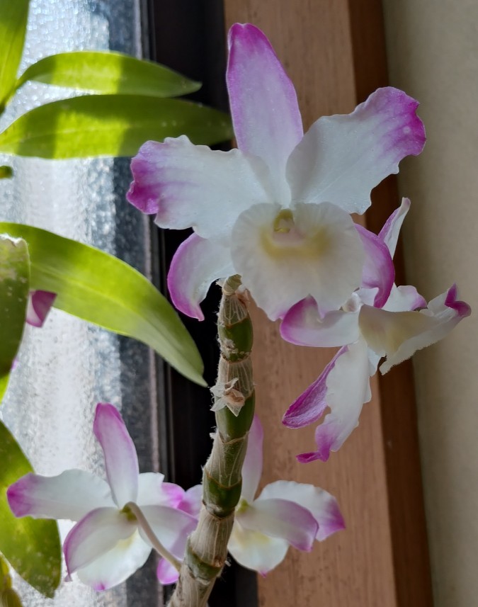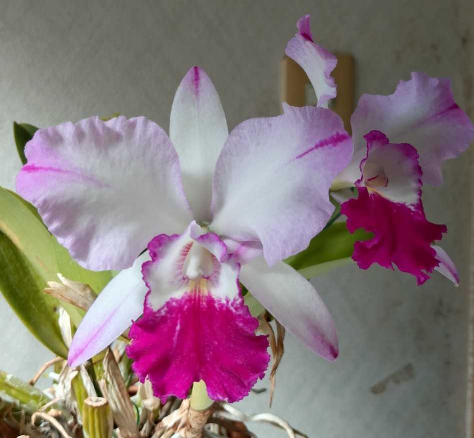 カトレア ドロシーオカ'ヒノモト'リンコレリオカトレア ドナ キムラ'パラダイスタミ'並べるとこんな感じ今回ドナキムラがちょっと小さめの花になってしまったま、ほとんどお手入れしてないから仕方がないとして、ドロシーオカのバルブ長に比べてのこの花の大きさ!バルブの大きさをわかりやすくするためドロシーオカを少し横に向けてみました