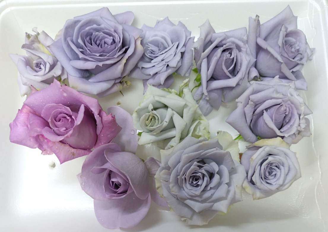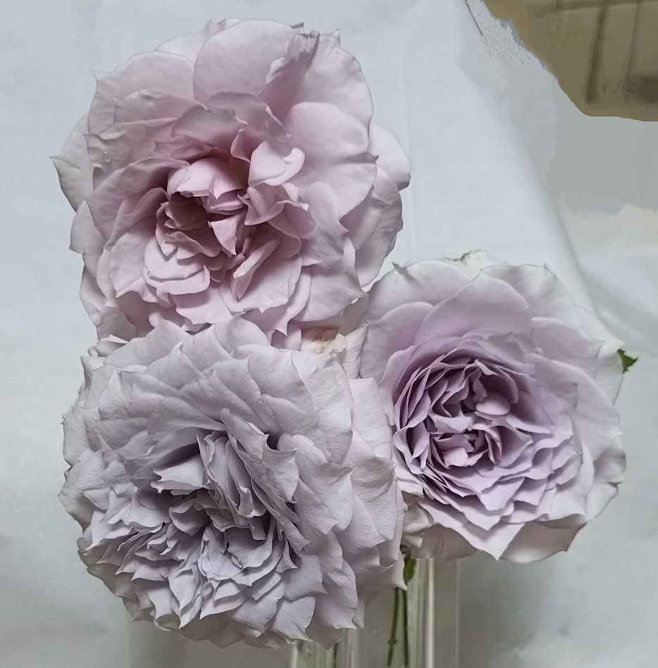 上:ブルーグラビティ左:ブルームーン右:ステンレススチール室外 曇り株を疲れさせないために花はなるべく早く切って部屋に飾って楽しんでます左:ブルーバユー中上:ブルームーン中下:ステンレススチール(7/19修正)右:ブルーグラビティ(7/19修正)室内ブルームーンはバラにハマるきっかけになった花ですバラは手間がかかりそうで、避けてました20年以上前のある日遠出して花苗を買いにいったのにめぼしいのがなくて、仕方なしに買ったのがブルームーンの大苗今みたいにネットで育て方調べられなかったので図書館でバラの育て方の本を借りて本の通りに育てたら春には綺麗に咲いてくれてとても感動しました今では手間のかかる青薔薇育てるまでになりました バラ ラピスヴェール乙女チックな風情とくすみピンクが素敵左3輪がブルドゥパルファム右側2輪がラピスヴェールブルームーン、ステンレススチール、クリムソングローリーは強香なので部屋がバラの香りです♪バラ苗【新苗】ブルームーン 国産苗《J-HT10》バラ苗【新苗】ブルーグラビティ 国産苗[農林水産省 品種登録出願中]《J-RO》バラ苗【新苗】ステンレススチール 国産苗《J-HT10》バラ苗【新苗】ブルーバユー 国産苗《J-FL20》バラ苗 【ブルドゥパルファム】 (新苗) ハイブリッドティー 四季咲き 大輪 紫系 F&Gローズ 国産苗 4号鉢バラ苗 【ラピスヴェール】 (中苗) フロリバンダ 四季咲き 中輪 紫系 白系 ローズフォーユー 国産苗 7号角鉢 (購入特典 ぼかし肥料1kg付き)