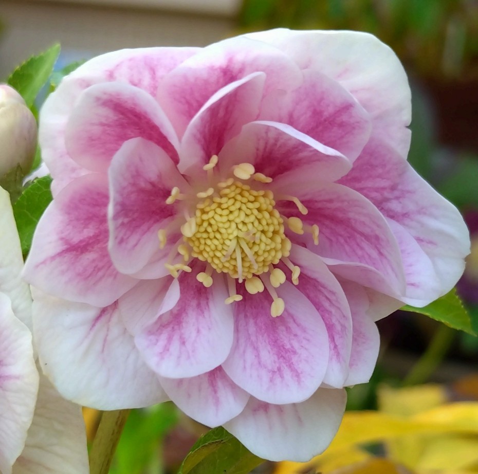 加藤農園さんのクリスマスローズは交配親の札があるから好きです名前付きのは高くて手が出ませんが これなんか結構それっぽいですよね名前付きになってたら価格が3倍くらいになってただろうから名無しで良かったホワイトゴールド系ワインレッドなこの花の親はブラック×ブラックゴールド!