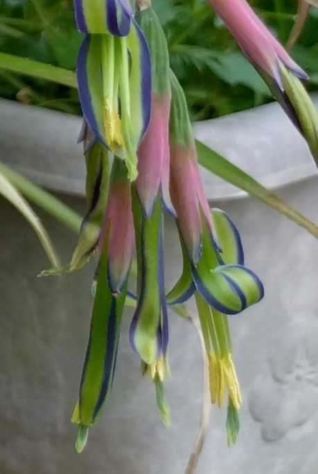 ヨウラクツツアナナス(女王の涙)丈夫な植物とわかってからは放置ぎみに栽培してるので一房に着く花の数が少ない花茎も細いし…ま、でも咲いてくれてありがとう♪