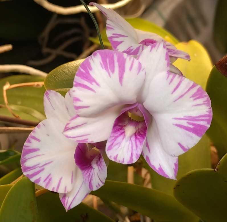 デンファレ エノビパープル 'スプラッシュ'Den.Enobi Purple 'Splash'今年も無事、咲いてくれましたー♪去年、本体が枯れて高芽から花を咲かせてたのですが今年もその高芽から花を咲かせてます高芽は植え替えてません…そのうち植え替えるからね…ブラナピンクは花着けるのにかなり強い光がいる事と比べてみても育成灯がない頃からちゃんと毎年咲いてくれてる事からも(私の好みとしては、やや生育不良のバルブから咲いてくれるほうが花が相対的に大きく見えて好きかなー)花着きの良い品種です今ならつぼみ、または花付き!-- 類稀な花色と花の咲き!洋ランの苗『激レア ミニデンファレ 「エノビパープル スプラッシュ」【花咲く苗セット】』花 セット 花鉢洋ラン栽培セット 説明書付き デンファレの育て方 デンファレ 育て方
