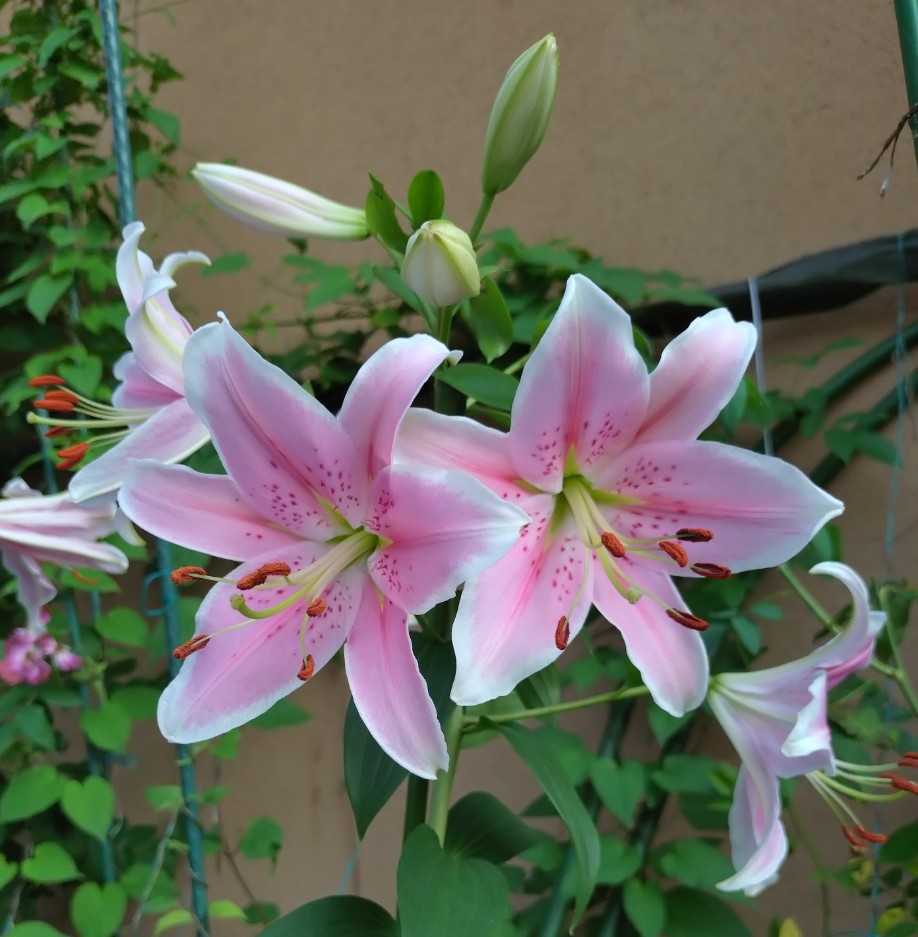 商品名『ピンクカサブランカ』2021年に購入10号ロングスリット鉢に植えっぱなしです本当の品種名は分かりません今年は肥料のタイミングが遅かったせいか、花が小さめですユリの良い香りがします♪