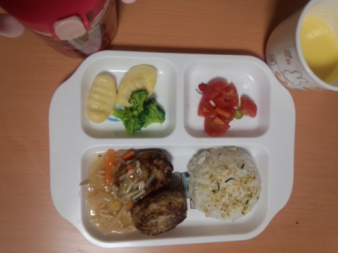 今日の娘ご飯・ふりかけご飯・豆腐ハンバーグの野菜あんかけ・ニョッキのカルボナーラ風、ブロッコリー添え・ミニトマト・にんじんのポタージュお皿が小さかった・・・しかも、せっかく娘用に豆腐たっぷりハンバーグを作ったのに大人の普通のハンバーグの方がよかったらしく、普通のハンバーグをもりもり食べてた娘娘が好きなニョッキは市販のカルボナーラソースを牛乳で薄めて和えてますこれとにんじんのポタージュはお気に入りで、ポタージュはおかわりまで本当に、よく食べるようになってうれしいです