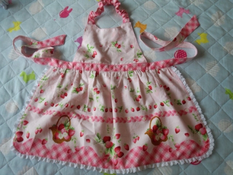 ずいぶん前に作ったイチゴ柄のスモックのあまり布を使ったエプロンです頭を通す部分はゴムを入れていますうらはこんな感じでポケットを付けていますもともとはリバーシブルにするつもりではなかったのですが、襟ぐり、脇ぐりが曲線になるので裏をつけたほうがラク、ならリバーシブルにするか、と行き当たりばったりで作ったのですが、まあまあ女の子らしい作品に仕上がりました今2歳の娘がひざ下丈なので、来年も着れるかな???女の子☆【好評再入荷】【サンリオ】【キッズ】ハローキティ☆子供用エプロン★サクランボ100cm...