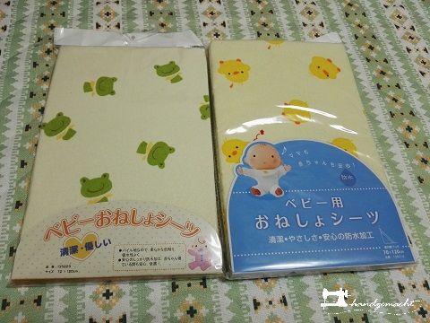 おねしょシーツを2種類(写真にないですがひよこ柄はもう1つ買ってます)