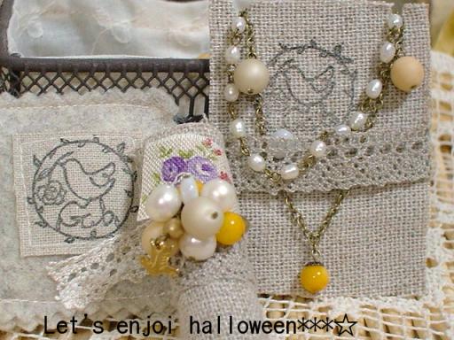 ♪***みなさんのところに無事、せなさんのSHOP,さんの ハロウィンイベントのお品が届き、沢山の喜びの声と、参加させていただいた ことに感謝しつつ、作った作品の内容をご紹介します***♪***ネックレスとブレスレットと、リングです*** ***ハロウィンということで、初めはやはり、かぼちゃかな?ということで かぼちゃとかおばけのチャームを使おうかと思ったのですが、 どうも子供っぽくなってしまいそうで、ちょっと考えました***それで、やはり今回は大人のハロウィンということで 私の大好きなアンティークと、天然石を使って作ることにしました♪***ぜんぜんハロウィンな感じにみえません?***一応、黄色いビーズをイエローパンプキンに無理やり見立てて それぞれ作りました***アンティークは、白いスフレと座金の真ん中につけたジルコニアです***ジルコニアのくすんだ、アンティークらしい輝きがとても気に入っています***大好きな淡水パールと、イエローパンプキンのようなイエロージェイドは パワーアップの石です***これを付けた人に、さらに元気をあたえてくれることを願いながら 作りました♪***ネックレスは5個全部に入れて、ブレスレットとの組み合わせか、 リングとの組み合わせにしました***そして、ラッピング******これは、ネックレスです*** ***一番上の写真が、ブレスレットとリングです******もしかしたら、作品を作るよりも、ラッピングの方が 難しいのかも知れませんね***結構考えて、苦労しました***これは、作った作品を入れるボックスです*** ***このボックスは、以前に見た手作り雑誌に載っていたものを ヒントに作りました***自分の分もちゃっかりつくって***♪***ビーズ作品より時間と手間がかかってしまいました***そして、箱の中身はこんな感じになりました~***ミニかぼちゃをプラスして~♪***やっとハロウィンらしく完成~~~☆ ***と、思いきや、一番初めに準備していたビーズがまだ あるじゃない♪ってことで******ボックスの上にデコレーション☆ ***ハロウィンのキャンディーの代わりです***これは、皮ひもに通して結んでいます***使い方は自由♪***そのままネックレスにしたり、ヘアーアクセサリーでもいいし、 ストラップやバッグなんかにぶら下げてもいいかも♪♪***と、こんな風に自分自身、とっても楽しみながら作れました***♪***そして、せなさんや、作家さんのところに喜びのこえが♪〃o(*´▽`*)o〃***みなさん、とても素敵に紹介してくださっています♪♪******しまうま50さん******♪♪******nagomiさん******♪♪******MIKERINさん******♪♪******ちびこ3215さん******♪☆***みなさん、どうもありがとうございました!***☆ヽ(*´∪`*)ノ" ***そして~******((*'д'*))カウプレの届くのをお待ちのみなさ~ん、 本当にお待たせしています~。。。***あと何回、このセリフを言うことやら。。。***でも、きっと喜んでいただけるよなプレゼントを 製作中です♪***今しばらく、お待ちくださいませ~。。。。。。 あったかそう~♪