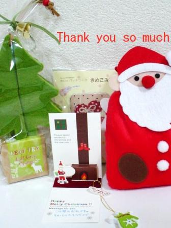 ☆***お久しぶりです!***&***メリークリスマス!***☆***前回も沢山の暖かいコメント、どんなに支えになり、 励まされたか******感謝しても感謝しきれません!***本当にありがとうございました!!***david fosterさん、sloth072さん、花の駅さん、ちえ4295さん、 しまうま50さん、いっこ1010さん、*-cococmi-*さん、cotton*さん、 smiring*さん、うさこちゃん、あおによしNさん、**snow drop**さん、 okirakukaeruさん、瑠璃草さん、** sakura **さん、そら と ほしさん、 :JILL:さん、**KANO**さん、ちちははよひがしさん、心のこもったコメントを 本当にありがとうございました!!***そして、訪れてくださった方たち、メッセージをくださったみなさん、 ありがとうございました!***みなさんの丁寧な一言一言が元気をくれ、慰められ、明るく生きていく エネルギーになりました***父も、みんなで穏やかに、天国へ送ることができました***今は、普通の生活に戻り、少し前に勤め先の棚卸しが終わり、 大分落ち着きました ***この間に、素敵なプレゼントが届いていたのに、紹介できずに いました***そして、素敵なお買い物も***♪***順番に、少しずつ紹介しますね***まず今日はプレゼントの紹介からです ***しろチビくんが紹介していますプレゼント、これは、 瑠璃草さんからです♪***カウプレのお礼にと贈ってくれました♪***キラキラ小さなツリーのキャンドルに、子供の頃の クリスマスを思い出させるおいしそうなおかし達♪o(>∀<o))♪ ***ウッドオーナメントに、ワクワクしてしまったレースや 綺麗なクロス♪はぅ~☆(″ω″♪)***そして、瑠璃草さんの手作りのバネポも♪♪♪***かわいいハリネズミの布とキノコので、とても使いやすそうな大きさです♪ ***瑠璃草さん、とっても嬉しかったです!***瑠璃草さんのプレゼントは心を明るくさせてくれ、 子供の頃のドキドキ☆ウキウキした気持ちを思い出させてくれました♪***本当にありがとう!大切に大切に使わせていただきますね♪***これからもどうぞ仲良くしてくださいね♪\(*^Ο^*)/♪***次に届いたプレゼントはこれ***というより、この子です~♪(●ゝω・)~☆ ***そう、わんこです♪▼・ェ・▼♪***はじめまして~♪***MERUといいます♪***少し前に、ダンナサマが「ちょっと灯油を買ってくる」と出て行って 帰ってきたら、手には小さな箱が♪***中にこの子が入っていたのです***まだ3ヶ月の小さなチワワです***前からそのうち飼いたいねって言っていたのですが、 まさか、こんなに早く家族が増えるとは思ってもいなかったので ビックリでした♪***母も私もかなり驚きましたが、あまりのかわいさに 釘付けになってしまいました♪***昼は私もいないし、母一人になることが多いので、 そんなことも考えて、つれてきてくれたダンナサマの気持ちが とても嬉しかったです♪***これからは、このブログの話題も一つ増えて、MERUくん日記も プラスされることになりそうです♪***名前は、結構悩んで、ダンナサマが好きなメルギブソンから つけました♪(ん~(´・ω・`)。оメルギブソンとチワワのイメージが まったくつながりません。。。汗。。。) ***よろしくね~♪***まだ素敵なプレゼントが***♪***うさこちゃんから***(o^∀≦o)~☆UFUFU***♪***そして、せなさんのSHOPでお買い物も***(^∪^*)ムフフ♪***それは次回に***♪***みなさんのクリスマスが☆HAPPY☆でありますように***