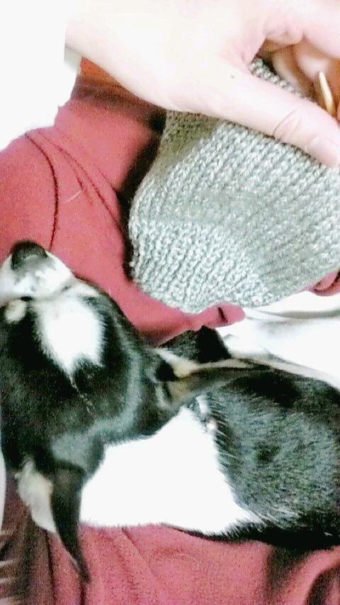 モコモコして、大きいみたいだけど、意外と華奢みたいで、腕の付け根と首周りの太さがメルの方が太いんです
