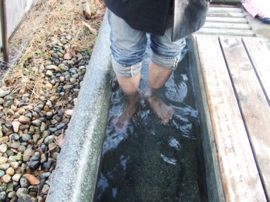今日もどこに行くのかまだ知りませ~~ん♪(*'▽')でもまずは、お土産屋さんへ(≧▽≦)勾玉を作ったりしてるお店へ。ここはめのうを使って、アクセサリーやその他色々の物を作ってました♪そして二件目のお土産屋さんへ。ここも高原地帯のようで、ソーセージ、乳製品、ヨーグルトなどを売ってました♪そして、足湯ができると言うことで、ちゃんと入ってきましたよ♪午前中だから、ちょっと冷えてたので、気持ちよかった♪ちなみにこれはオットの足です(笑)ついつい買ってしまうんだよね・・・・こういうのって(^▽^;)私は鳥取、島根県って行ったことなかったので、ここまで来たら、絶対に島根の出雲大社に行きたい!!と思ってたら、ついに行ってくれました♪♪♪出雲大社!!(^▽^)ノ拝殿、本殿を見て、ちゃんとお参りしてきました♪ そしてここは神楽殿。1500人いっぺんにご祈祷とかできるそうです。おっきな綱があって、びっくりしました!私たちが乗ってきた、観光バスより大きいそうな。ここは縁結びの神様として有名ですよね。ここでは係りの人が中を案内してくれて、簡単に説明してくれました。縁結びって言っても、恋愛だけじゃなくて色々なものの縁を結んでくれますよ。との事なので、大阪との縁を結んでくださいってお願いしてきました。面白かったのが、神様の宿舎がある事。出雲の国は一年に一回、八百万の神様が集まる所。だから他のところでは「神無月」と呼ぶも「神有月」と呼ぶんだそう♪その集まった神様が泊まる所。ちゃんとそのお祭りをする時はちゃんと扉を開けて、神様をお迎えして、神様を送った後は、閉めるんだそう♪おもしろーい♪それから、古代の出雲大社のお社の柱の跡がありました。当時の出雲大社はこんな太い柱が9本(だったかな?)建ってて、もっともっと高い建物だったそうです♪すごい!(^▽^)ノ一つの丸が一本の柱で、それが3本セットになって一本、だって(^▽^)出雲大社の近くのお店で出雲そばのお昼ご飯を食べて、その後、松江の城下町を散策♪松江城をちらっと見てきました♪松江は京都、金沢とならんで和菓子のおいしい町だそう♪歩きながら、ちょこちょこ試食して来ました(*'▽')その後にまたまたお土産屋さんへ(≧▽≦)鳥取のほうへ戻り、新鮮なお魚を売ってるところ。かにを買い込んでる人もいましたよ~~~。ここではアジのひものを買い、それからもう一件!お菓子のお土産屋さんへ行きました!も~~~~さすがに買い物はないよ!!(≧▽≦)って事で、ここはもっぱら試食ですませてバスに乗り込みました(笑)そして大阪へ向かうバスの中ではぐっすりの眠り込んで帰ってきました(*'▽')あー、楽しかった♪ミステリーツアーに参加したのは初めてだったけど、なかなか楽しかったな♪また機会があれば行ってみたいです♪