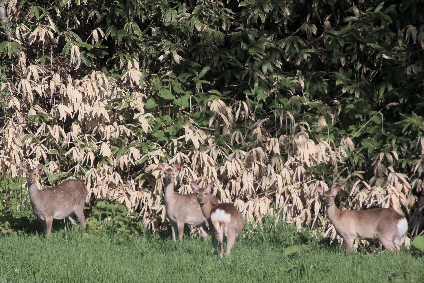 一昨日撮った写真、5月後半になりエゾシカ達も出産のシーズンになって来たようで、見るからに出産間近のようだ。エゾシカを狩る立場の私にしても、暫くはお休みを頂く事になりそうです