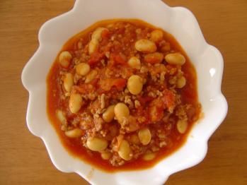 今日は日曜出勤。良い天気だったのに。ちょいと、辛めのチリビーンズです。