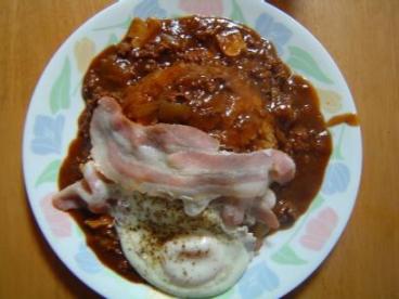 今日は朝から体調悪く、休養しておりました。こんな時の夕飯は、市販の素で気軽にできるものに限りますねということで、ハッシュドビーフ。息子に、卵があるけど食べる?と聞いたところ、食べる!というので、できあがりました。ハッシュドビーフベーコンエッグのせそれなりに、美味かったようです