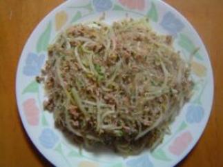 だんだん、暖かくなってきました。ツーリングシーズン到来♪早く暇になって欲しい(仕事)今夜の夕食は、豚挽肉とセロリのエスニック春雨炒め(舌かみそう)ツナのクリームペンネ、ミネストローネです。豚挽き肉とセロリのエスニック炒めツナのクリームペンネミネストローネ春雨は腸内の不純物を取ってくれるそうです。今夜も、美味しく頂きました。豚肉とセロリのエスニック風春雨炒め材料(4人分)豚挽き肉 200グラム春雨 120グラム干し海老 大さじ2くらいセロリ 1本もやし 1袋長ネギ(みじん切り) 半本くらい生姜(みじん切り) 1片塩、胡椒 適量ごま油 適量酒 適量醤油 適量作り方干し海老は100ml位のお湯につけ、柔らかくする。春雨はぬるま湯につけて戻し、食べやすい長さに切る。セロリは茎の太い部分は縦に4等分し、5cm位の長さに切る。葉は細かく刻む。フライパンにごま油を熱し、長ネギと生姜を炒め、香りが出たら挽肉を加えて炒める。セロリともやしを加えて炒め、干し海老をを戻し汁ごと加え、酒、醤油を適量加える。春雨を加え、春雨に水分を吸わせながら炒める。セロリの葉を加え、塩、コショーで味を調える。ツナのクリームペンネ材料(4人分)ペンネ 400グラムツナ缶 1缶玉ねぎ(みじん切り) 1個生クリーム 1カップ白ワイン 100ccオリーブオイル 大さじ2うすくち醤油 小さじ2塩、胡椒、パセリみじん切り 少々作り方ペンネを茹で、お湯を切る。ツナ缶は油を切ってほぐしておく。鍋を熱し、オリーブオイルを入れ、玉ねぎを炒める。ツナを入れ、白ワインを加えて煮詰め、アルコールを飛ばす。生クリームを加え、うすくち醤油、塩、胡椒で味を調え、ペンネを加えて混ぜる。器に盛り、パセリをふりかける。どうぞ、召し上がれ
