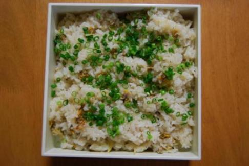 朝、娘に「アサリを剥くから起きて!」と起こされ、アサリと格闘。ほとんど娘が剥きましたが(汗)貝が小さいので、当然身も小さくかなりの数を剥きましたが、100グラムがやっと。アサリを剥き終わって、娘はお爺ちゃんのもとへいざ、作ろうとしたら、やはりアサリの量が足りない。スーパーでアサリを買って足してもいい?と娘に聞いたら、えー!今回は足さないで。アサリが少なくてもいいとが。自分達で収穫したアサリのみを、義父にご馳走したい気持ちで一杯の様子。よし!アサリは少ないけれども、深川飯には変わらない深川飯毎週末、仕事を終えてから実家に帰る嫁に持って行ってもらいました。義父が喜んでくださるといいのですが。材料米 3号だし汁 2号(鰹節でとりました)アサリの剥き身 200グラム位(今回100グラムあったかな?)アサリの汁生姜 1片 千切りにする。水 1号塩 少々薄口しょうゆ 50CCくらい酒 大さじ2くらい万能ねぎ 適量作り方米を研いでザルに上げ水気を切る。米を釜に戻して、だし汁をいれ、1時間漬ける。釜に水、アサリの剥き身、生姜を入れて炊く。炊き上がったら、よく混ぜる。器に盛り、万能ねぎを散らす。お好みで刻み海苔も。