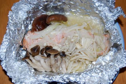 今日は午後から珍しく天気予報が当たりました今夜の晩ご飯は、先日職場の夕食メニューにあった一品を真似してみました。生鮭とエノキ、シメジ、椎茸、玉ねぎ。あとは塩胡椒とバター、白ワインです。オーブントースターで25分ほど焼きました。ホイルを開けるとキノコの香りがふんわりと鮭も柔らかく、美味しかった来週は、1段階のみきわめ。合格すれば2段階。天気が安定してくれることを願っております。