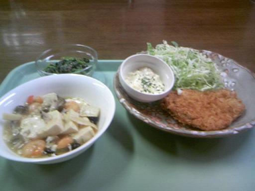 今夜は施設で提供された夕食をアップ。カジキフライと海老,豆腐の中華風あんかけ。調理担当は,パートの女性。例のおばさんより,とても丁寧に作ってくれます。フライはカラッと揚がって,あんかけはあっさりとして美味しかった。ごちそうさま。そういえば,教習所からが届きました。教官にお礼のお菓子でも買っていくかな?