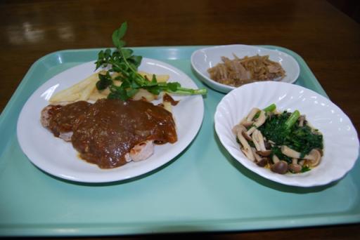 今朝は昨日と違い暖かく、ほっとしています。今日は、一昨日の夜勤に食べた夕ご飯です。塩胡椒で焼いた豚ロース肉にカレーソースをかけた一皿、きのことほうれん草の和え物、蓮根、ごぼう、白瀧のキンピラでした。ひとつひとつ、丁寧に作ってあり、また、寒い中帰ってくる人に温かい出来立てを提供してくださいます。いつも、美味しく頂いております。ありがとう。さて、これから娘と実家へ行ってきます。寒いけれど、タンデムです♪