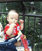 最近、隼人とのお食事タイムはいらいら爆発の時間だ。前までは食べ物に興味を持っていなかったのか、食べさせようとしてもどこかみていて口をあけるだけだった。でもここ最近、自分が食べたいもの、飲みたいものを指さす。そしていらないものは手で払いのけるんだ。自分が食べたいものがあるとイスからたちあがり、テーブルにのってとろうとする。まだきたないというのがわからないから、口にいれて食べているのに、自分の指を口に入れてべちょべちょの手をイス、テーブル、洋服にこすりつける。ナポリタンを食べるときが一番最悪。もうママの顔には血管うきでてる、こらーやめろーと何度も叫んでるよ。でもこれは成長のひとつだから大きな声をだしてもしかたない。自分が食べたいものを手でつかみ、口に持っていくことが出来る。すごいじゃん、隼人の成長振り。最近ではスプーンをもって食べることもすこしできるようになってきたんだ。ママはいらいらと我が子の成長のために、心の中で格闘してるよ、おこっちゃいけない、おこっちゃいけないって。でもこの後、イスから落ちて思いっきり後頭部をうった。だから今度からはサイドテーブルで立たせて食べさせることにした。そしたらスプーンをもったままソファーに歩いていってソファーにスプーンを押し付けていたよ。もぅ、やめなさい!!お母さん、いつもふいてまわってばかり。友達に聞くとあと1年で落ち着くよ、とのこと。あと1年ながすぎない?