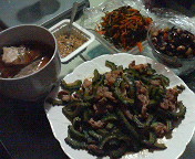ゴウヤと豚肉の炒め物 鰤のあらのお味噌汁 にんじんと切り昆布のめんつゆ和え ひじきと大豆の和え物 納豆 和食1本の夕食!! ゴウヤ以外隼人も全部食べた!!