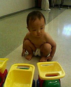 今日は雨だった。でもリトミック教室は私の住んでいる斜め前の公民館でやっているので雨の日はとくに近くてよかったーと思う。隼人もようやくリトミック教室になれてきた。きっとすたすた歩けるようになってきたからかなー。子供が喜んで楽器をたたいたり、リズムをとっている姿を見るのはすごく嬉しい。先生が今日手土産に味のりをくれた。なんか教室で味のりもらうなんて不思議だわ。でも、ちょうど味のりがたべたいとおもっていたからすごくありがたかった。